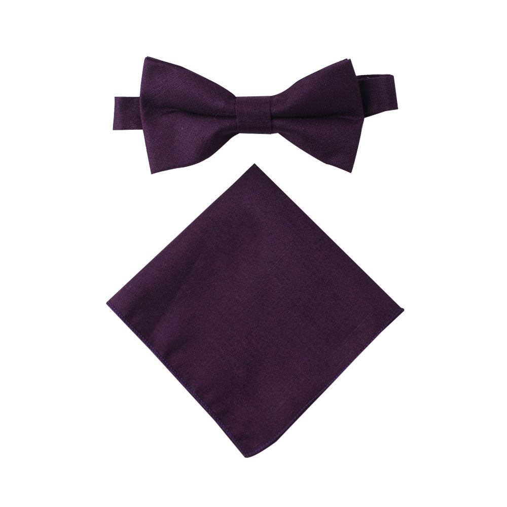 Dark Purple Cotton Bow Tie & Pocket Square Set