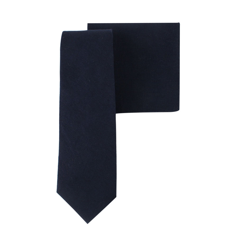 Navy Cotton Business Tie & Pocket Square Set