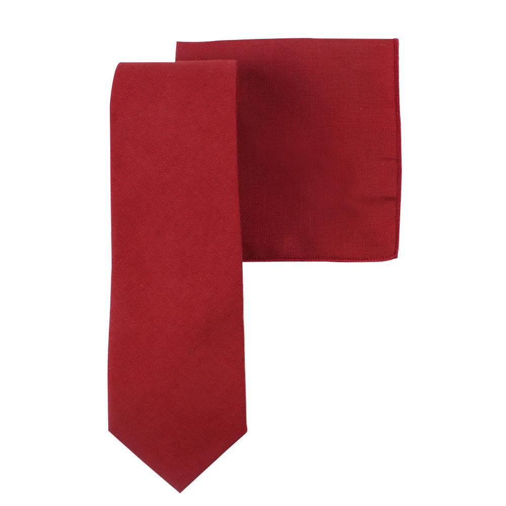 Red Cotton Business Tie & Pocket Square Set