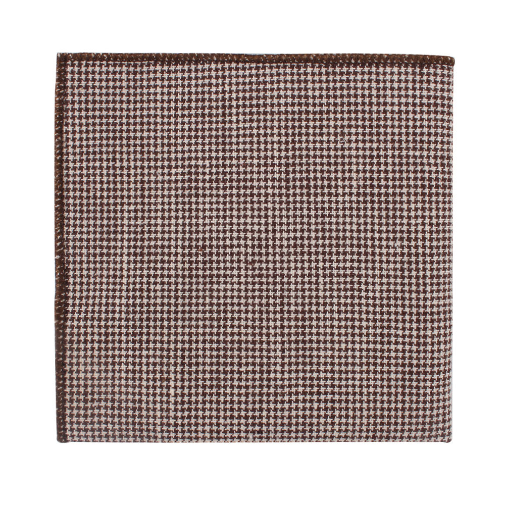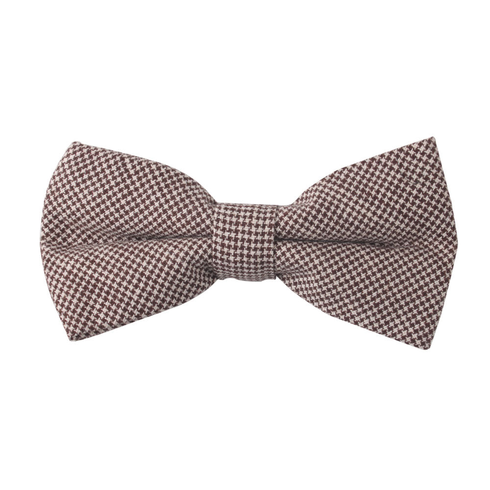 Brown Mini Houndstooth Cotton Bow Tie & Pocket Square Set