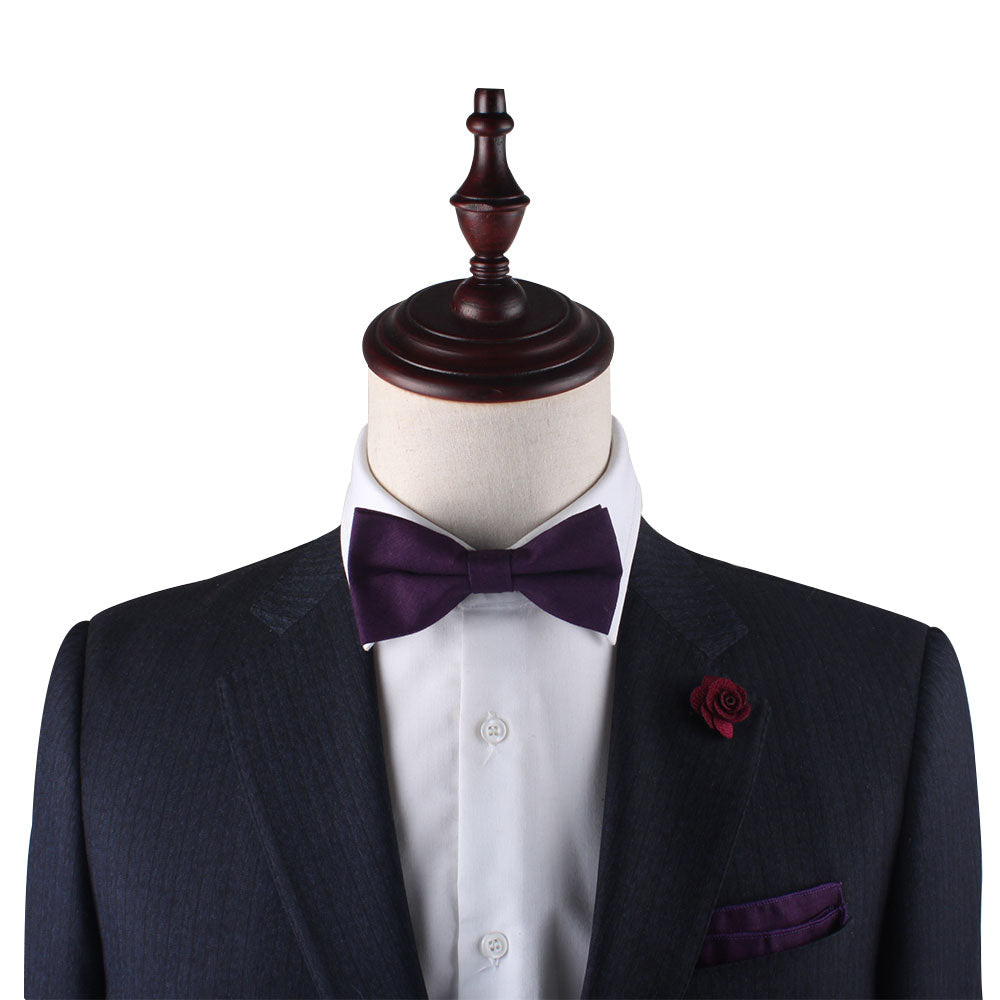 Dark Purple Cotton Bow Tie & Pocket Square Set