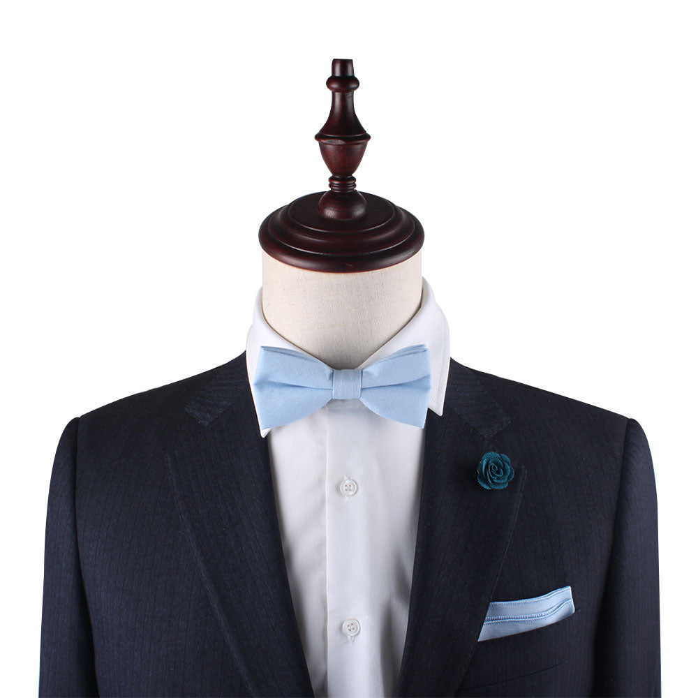 Light Blue Cotton Bow Tie & Pocket Square Set