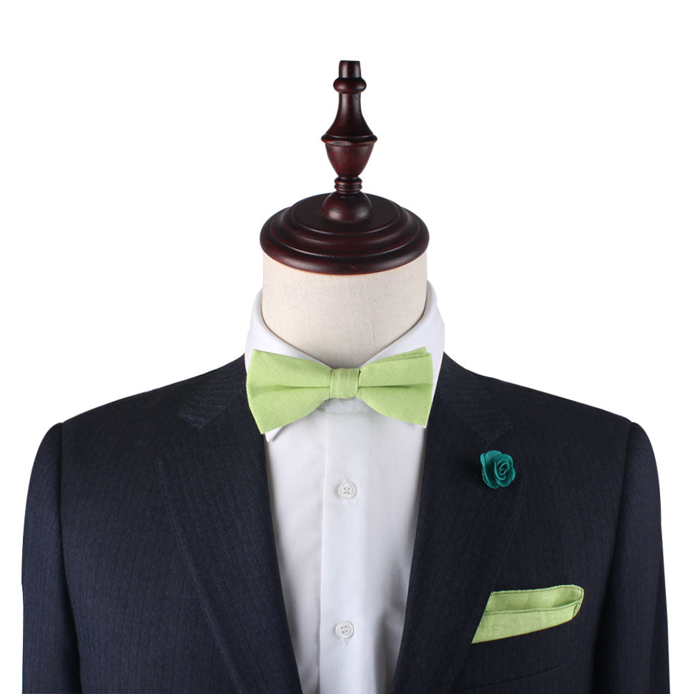 Lime Green Cotton Bow Tie & Pocket Square Set