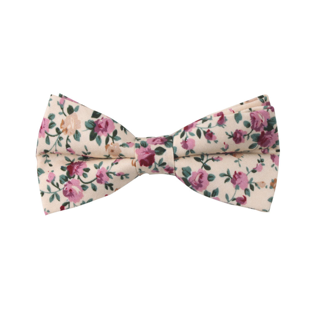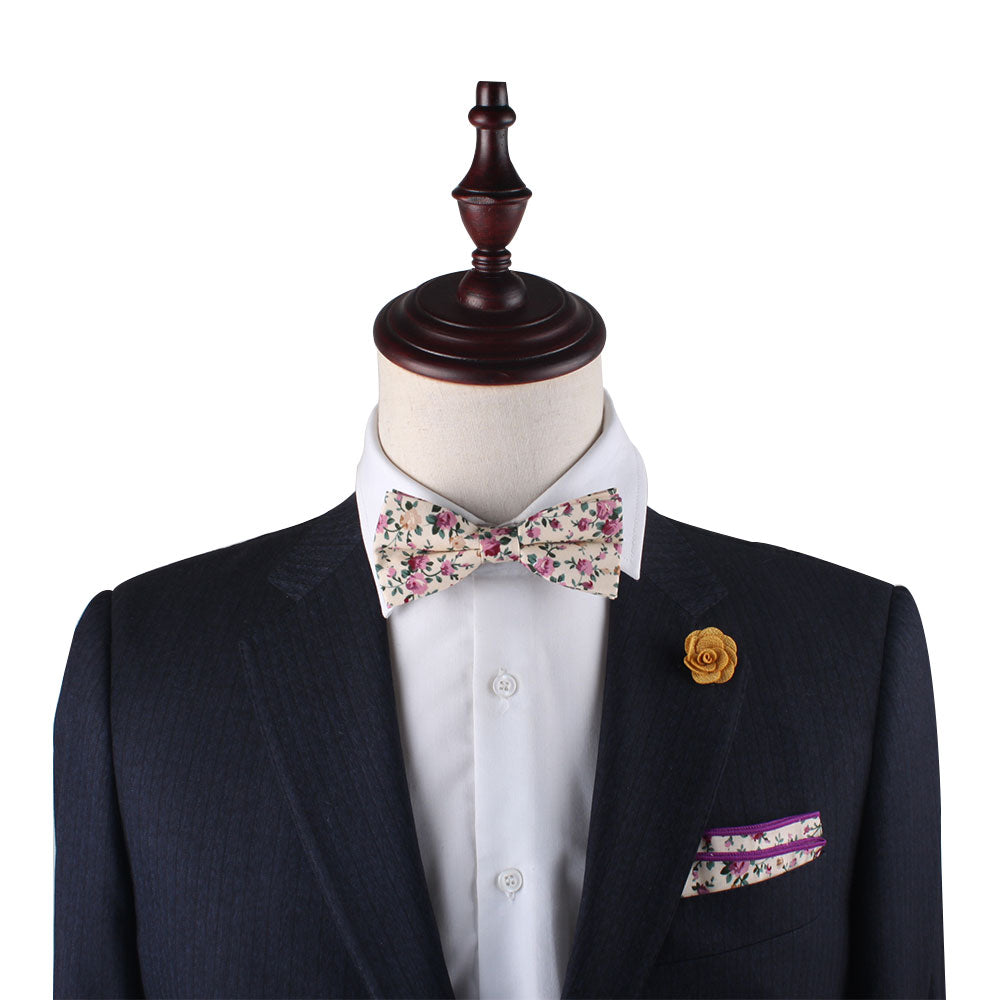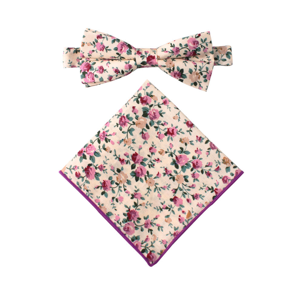 Pastel Pink Rose Floral Cotton Bow Tie & Pocket Square Set