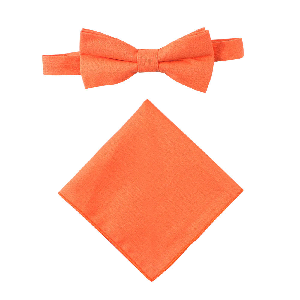 Peach Orange Cotton Bow Tie & Pocket Square Set