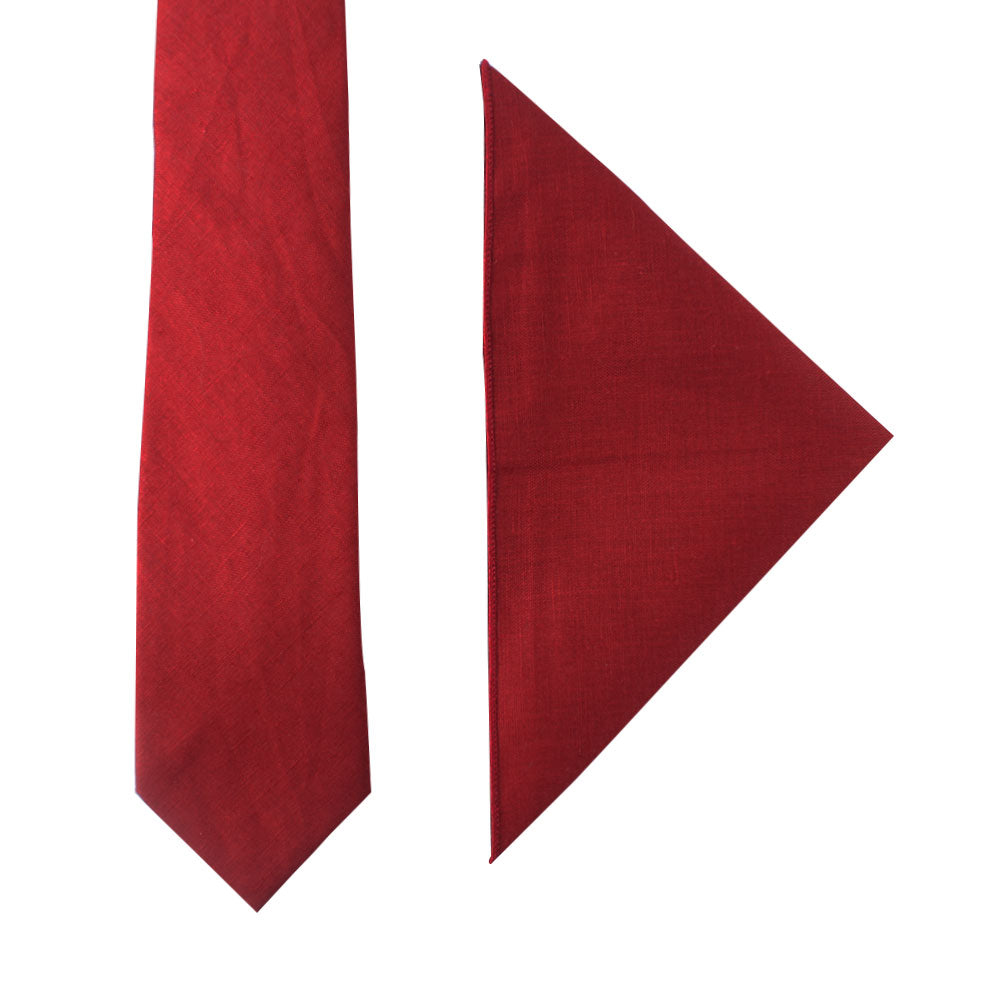 Red Cotton Business Tie & Pocket Square Set